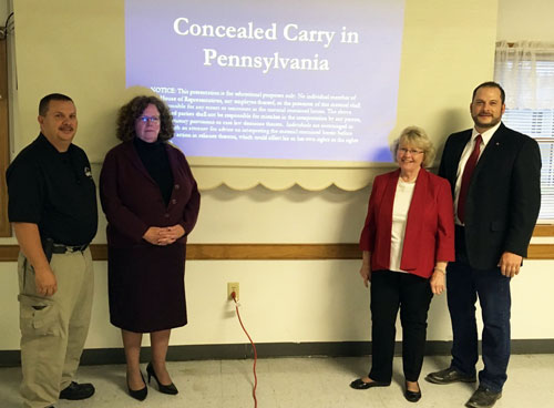 I was pleased to co-host a concealed carry/castle doctrine seminar with my esteemed colleague, Rep. Tina Pickett (R-Bradford/Sullivan/Susquehanna). The Elk Lake American Legion was nice enough to let us use their facilities for this event and the place was filled to capacity! As always, Susquehanna County District Attorney Marion O'Malley and Susquehanna County Sheriff Lance Benedict put on great presentations with very valuable information. |
